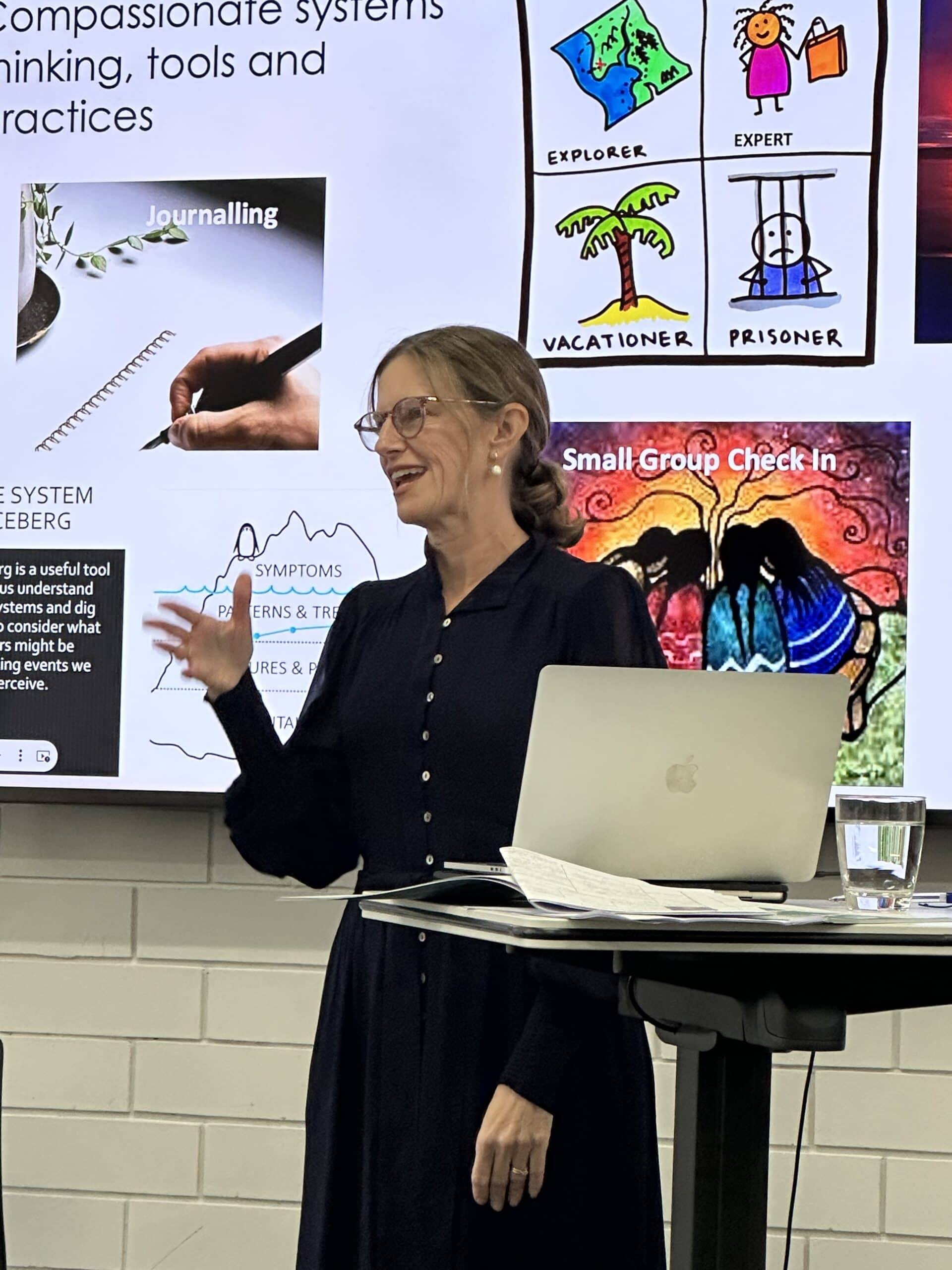 Alongside organisational growth, Bec shared her personal leadership journey—reflecting on self-awareness, vulnerability, and the use of tools to examine mental models and patterns of thinking and responding. She highlighted how students and staff are also engaging with these practices to build their own capabilities and systems awareness.